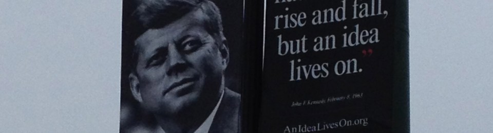 All along Harvard Street in Brookline, Massachusetts, the home of President John F. Kennedy, there are banners proclaiming some of his thought-provoking words.